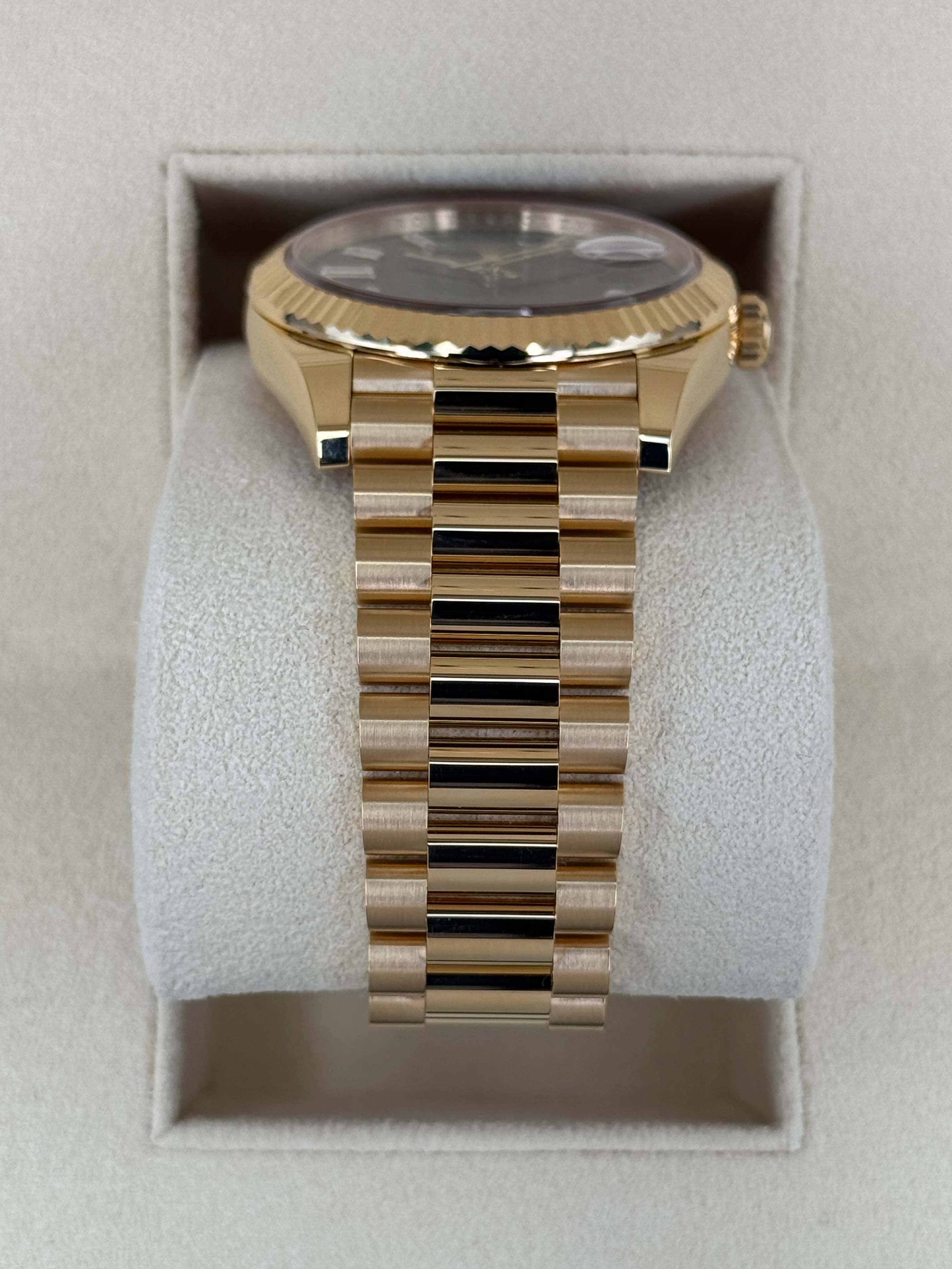 NEW 2025 Rolex Day-Date 40mm 228238 Presidential 18kt Yellow Gold Bright Black Diamond Baguette Dial