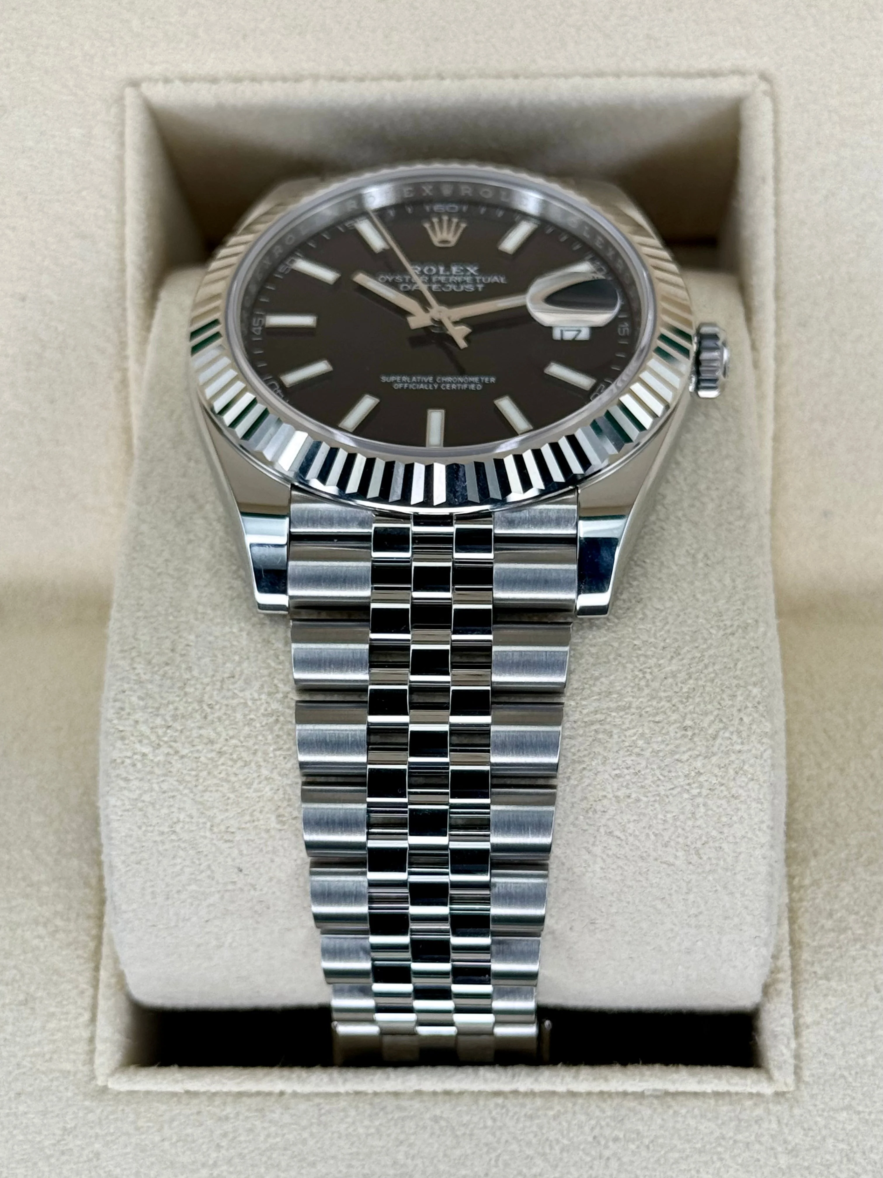 NEW 2025 Rolex Datejust 41mm 126334 Stainless Steel and 18k White Gold Fluted Bezel Jubilee Bracelet Black Dial